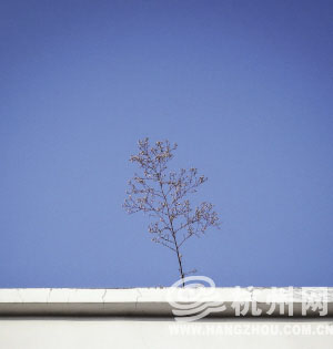 房顶上长出一棵孤单的小植物。 快拍小友 水波微漾 摄