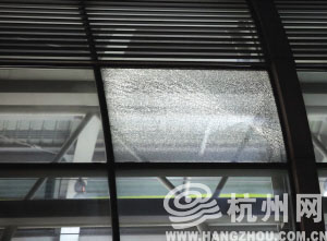 昨天,网友“@_月牙妞的本命年求顺”在微博上发了张杭州地铁1号线乔司站高架候车站台玻璃碎裂的照片,并说这样的碎玻璃有好多块!