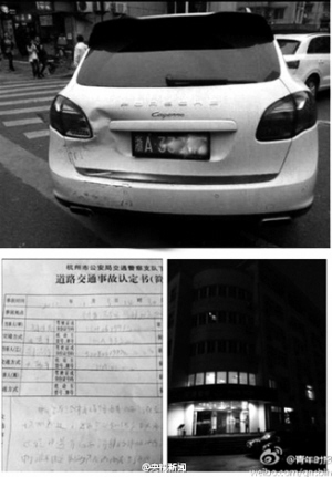 据杭州市交警部门消息,昨天下午,在杭州市延安路体育场路路口,一辆白色保时捷卡宴与一公交车发生刮擦。经确认,卡宴驾驶员为奥运冠军孙杨。