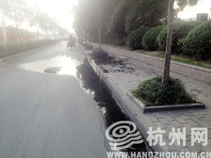 即使是昨天这样的晴好天气,在艮山东路红普路口往东一点,人行道地砖下面,有水汩汩地冒出来,在非机动车道形成了一小滩积水。詹师傅说,这样的情况,基本上天天能看到。