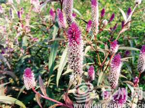 除了格桑花,江洋畈里很多花儿还娇滴滴地开着。紫红的青葙开得灿烂如霞,狼尾草、芦苇、细叶芒等观赏草摇曳着穗花儿,紫红色的向日葵还有零星开放着。