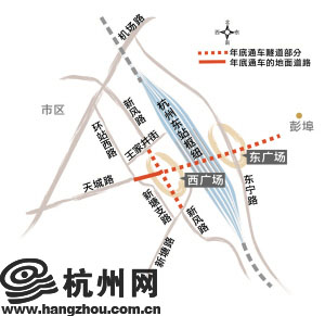新风路这几年一直被建设中的火车东站西广场隔断,东站开通初期,新风路上来往的车辆,进出东站都得绕路。今后,新风路将以下穿隧道的方式通过西广场,实现贯通,方便城南、城北社会车辆进出东站。天城路现在也被西广场施工隔断,今后将由双向4车道变为双向8车道。沿天城路一路往东,穿过火车东站,可以一直开到彭埠。