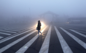 长春,市民在大雾中行色匆匆。