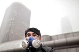 北京,戴着防霾口罩的市民。