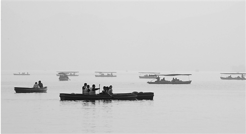 昨天午后,灰霾“染黄”了西湖,太阳黯然失色。 好摄之友 里尔 摄