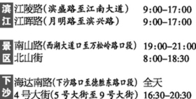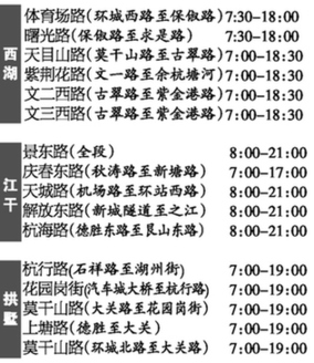 整治每天7时到19时为主。重点商贸场所双休日、促销日(武林商圈、湖滨商圈、吴山商圈,以及万象城、城西银泰、西城广场周边),延迟至21时。