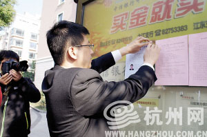 12月2日,萧山法院执行法官在一位“老赖”所在的社区橱窗张贴执行公告,迫使“不想丢面子”的被执行人尽快履行判决义务。