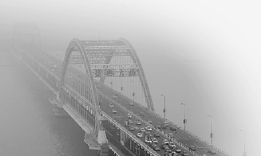 昨天,整座杭州复兴大桥被雾霾笼罩。 本报记者 董旭明 摄