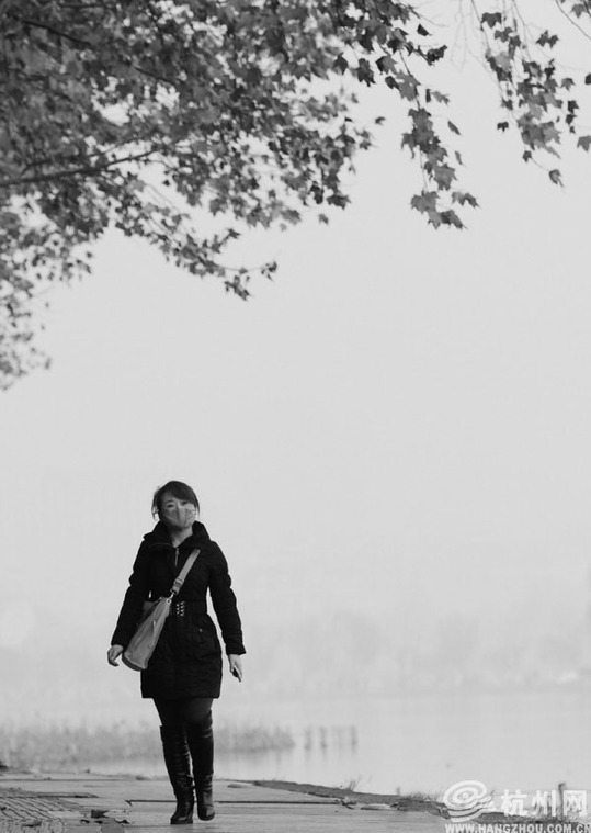 昨天,虽然温度适宜,雾霾下的西湖游客明显减少,“失色”不少。 记者 杜国平摄