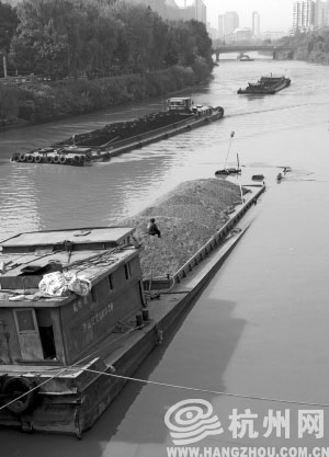 昨天上午,艮山门水上巴士码头一艘运石子的货船沉没。