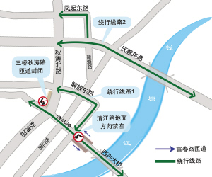 受此影响,清江路、富春路、解放东路的通行压力增大。同时,也给三桥以南、富春路以东的11个小区居民带来暂时的出行不便。