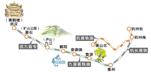 另外,九景衢铁路建成后,大家去武汉也多了一条线路。九景衢铁路过九江后,将和武九客运专线对接(预计2016年底建成),届时走杭长高铁—九景衢铁路—武九客运专线,5小时左右就能到武汉。