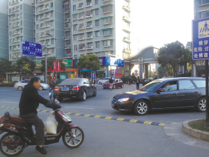 和之前几次来时比,情况并没有明显的改善,车流之中,小区进出的居民习惯性地横穿马路,有经验的驾驶员,则会到这个口子稍微减点速,以防发生事故。