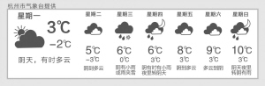 杭州市气象台预报,今天开始,雪停。今明两天,都是阴天或者多云的天气。