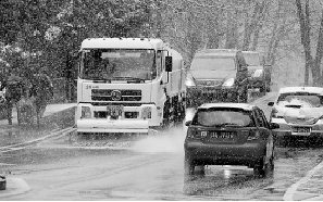 景区出动洒水车除雪。