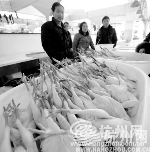 杭州春嫂煲土家菜就是其中下订单的一家,“禽流感之前,我家冷菜有白切鸡,现在只能撤下了,一般也不敢给顾客推荐鸡肉。只能等顾客自己点。”店老板说,也有不少客人不太忌讳,特别是男士,一坐下就豪爽地喊道,来一只鸡。