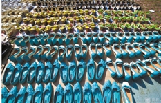 2013年10月10日,白鹿鞋城商户正在晾晒被雨水淹没的皮鞋。