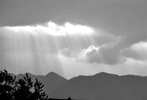 昨天傍晚,天空放晴,萧山上空突然出现一道霞光,一直持续大约有10分钟。 傅灿良 摄