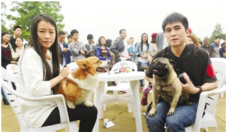 带着宠物相亲的男女,希望用爱心为自己加分。
