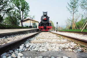 贯穿公园的铁轨全长1.5公里,全部由旧铁轨改造铺设,设置道岔4组,机车转盘2个,分别用于观光小火车和铁路自行车掉头。铺设的铁轨,不仅串联了公园各个景点,而且还成为公园内部交通道路。