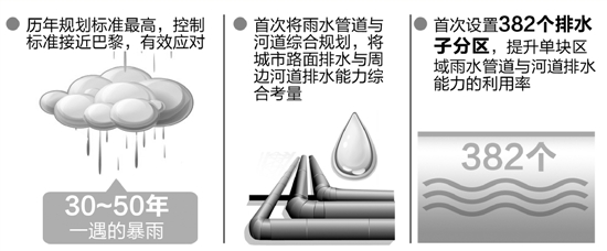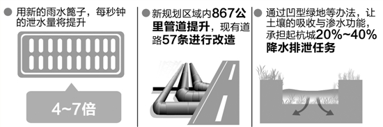 昨天,由杭州市规划局、市城管委、市林水局共同委托编制的《杭州市城市排水(雨水)防涝综合规划》开始公示,这是杭州将雨水管道与河道一起考虑的综合性规划,第一次将城市路面排水与河道排水能力一并进行整体考量,并利用道路两侧干沟和绿化带进行辅助行泄。杭城内涝的防治标准,将由此提升到能够有效应对不低于30~50年一遇暴雨的水准。