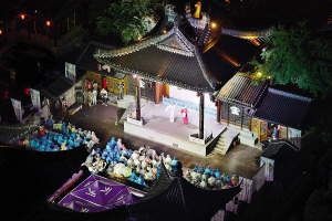 昨日,位于运河文化广场上的南戏楼,也就是原先的“荣华茶园”重新开张,并更名为“荣华戏院”。戏院首秀是一场由近百位浙江曲艺名角献演的“浙江好腔调——山水依旧”,预祝运河申遗成功。杭州日报通讯员 吕黛芬 记者 李忠 摄