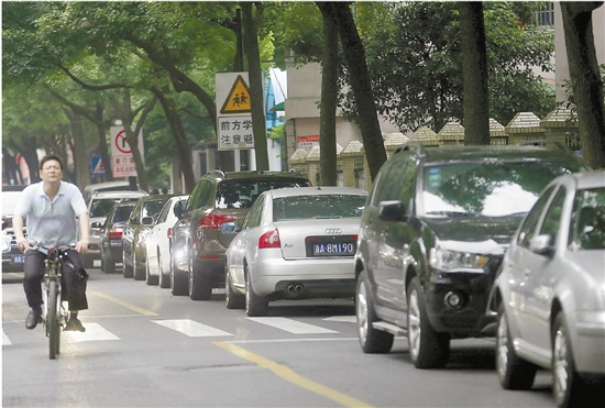 路边的车位上,总是停满了车子。本报记者 林云龙 摄