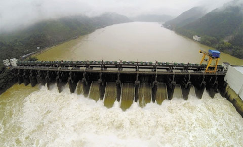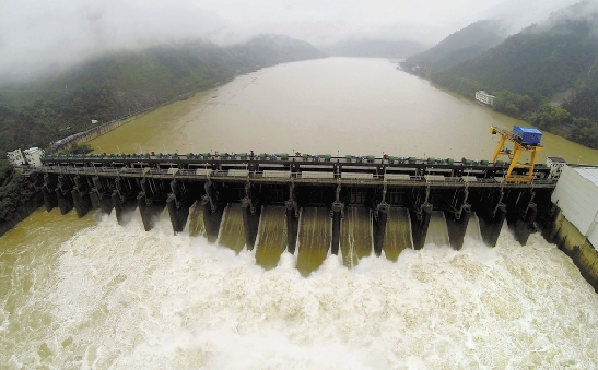 昨日,杭州富春江电站泄洪流量达到6300立方米/秒。当日的富春江水库水位达23.4米,超过23米的警戒水位。本报记者梁臻 摄