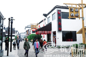 广济桥之南的水南街,有江南阿二、川味观、肯德基乃至KTV、酒吧等休闲业态进驻,他们依托古镇的人文景观,呈现出不同以往的别样韵味。塘栖古镇正朝着一个混搭小资情调与古镇风情的潮流街区迈进,这是“左岸历史,右岸未来”的完美融合,形成了以广济桥为中心的商圈。