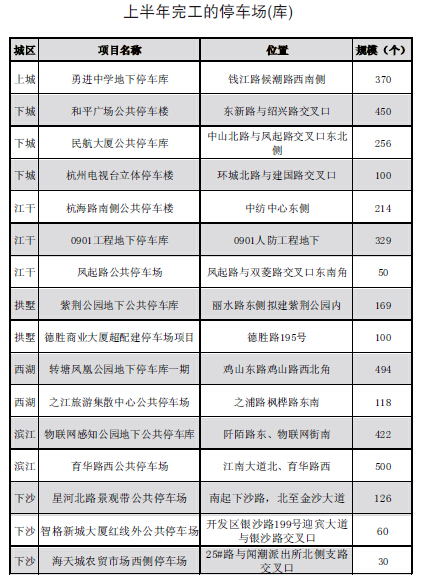 据了解,今年杭州市停车场建设目标为“新增5万个停车泊位,其中公共停车泊位7000个”。截至7月底,杭州主城区累计新建成停车泊位37406个,已完成省治堵考核目标的74%,其中,公共停车场新建成16个项目,提供3788个泊位。