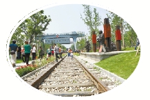 白塔公园里,昔日的铁轨变身为休闲健身的游步道