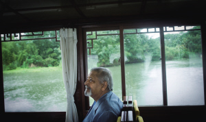 奈保尔在西溪湿地的游船上 记者 朱丹阳 摄
