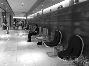 在西溪印象城的一楼,就有六个休息处,每个休息处至少可以坐六名顾客,其中的两个休息处甚至还能供十余名顾客休息。好些带着孩子的年轻父母和大伯大妈,都在那里悠闲地休息。此外,在二楼和三楼也有若干休息处,而且在客流量很大的周末,这些座位显然很受欢迎。