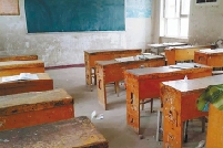 曾经的教室里都是破旧的课桌椅。