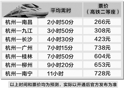 年底杭州去长沙、南宁、广州全程高铁