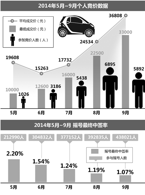 金琳说,本期的价格让人惊呼意外,说明已经超过了多数人的心理承受能力。从市场的角度来说,工薪阶层一般会选择15-20万元的车,现在的竞价平均价超过了3万,几乎是车价的五分之一,可能未来有更多人放弃竞价。