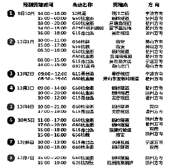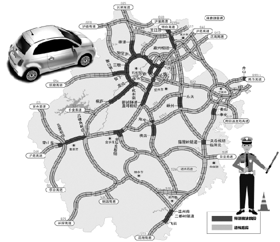 昨天上午,浙江省交通投资集团有限公司、浙江省公安厅高速公路交通警察总队等高速公路运营管理部门,通报今年国庆期间全省高速公路出行指南,同时“智慧高速”APP也正式首发,将为司乘人员提供高速公路交通信息服务。