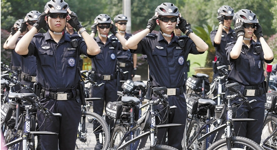 国庆长假,除了去看西湖,要么再去看看景安巡逻队的帅警吧。记者林云龙 摄