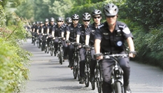 这支巡逻队实在太帅了!清一色是装备齐全的帅哥美女,或骑行带警方标识的赛车款自行车,或骑行电动车。