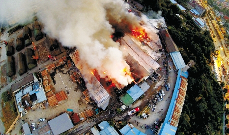 朱师傅和这两名工友都在造纸厂的成品仓库工作,事发时3人正值班,突然看到外面浓烟阵阵,跑出去一看,发现大事不好。