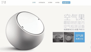 领跑者公司设计的室内空气检测设备“空气果”,可检测PM2.5与二氧化碳浓度。