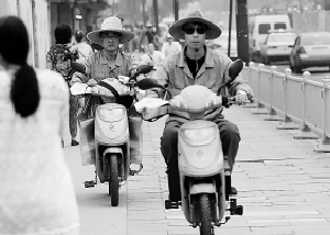 一顶草帽、一辆电动车、一双黑色大头皮鞋、一个水杯、一个燃气检漏仪,还有黝黑的皮肤,这是他们的标配。“电动车还是双电瓶的,因为每天跑得路太长。”姚师傅说。