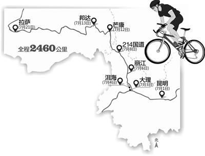 本报讯 昆明到拉萨,2460公里的距离,三个从杭州出发的小伙伴和一位在昆明读书的在校大学生,花了20天的时间,完成了以难度高著称的滇藏线骑行。