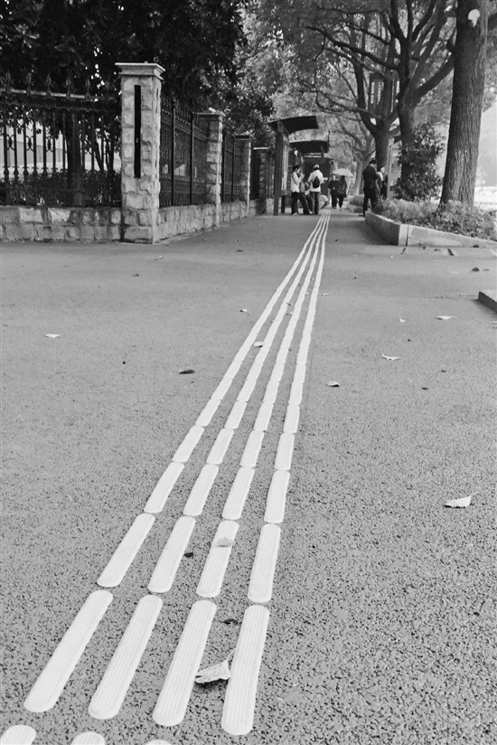 这条盲道选用的是杭州首次尝试的塑料材质。两侧人行道加起来1000多米的盲道,造价约6万多元,算得上是杭州目前“最贵盲道”了。