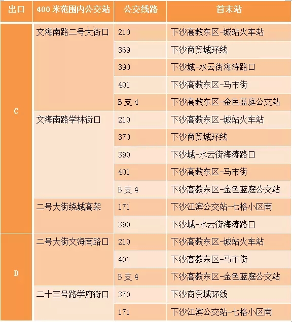 车站目前设2个出入口,C口和D口。配套公交接驳如图: