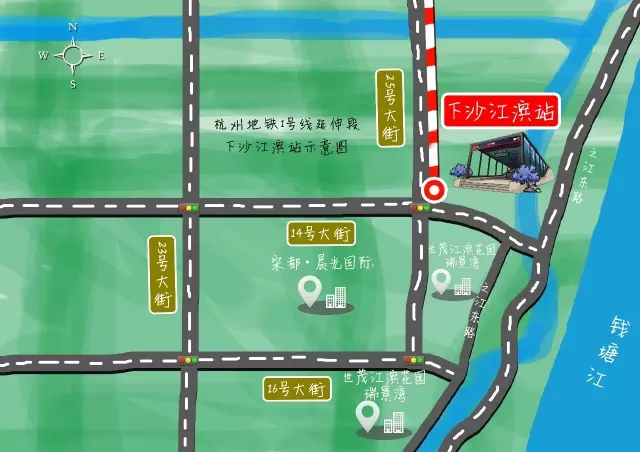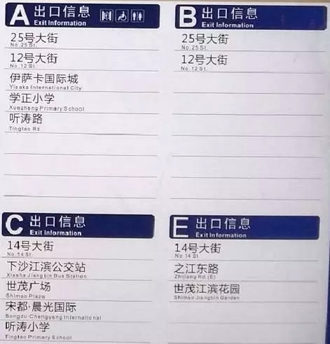 江滨站的4个出入口,A、B、C、E外都是成熟社区: