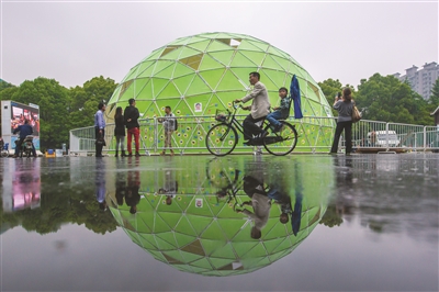 昨天下午,拱宸桥畔运河广场,第九届杭州市民摄影节正在进行最后的布展准备,已经有不少市民前来参观。 记者 陈中秋 摄