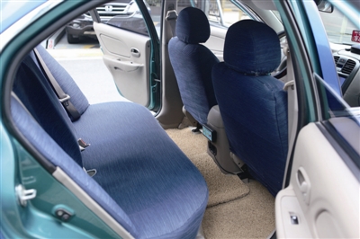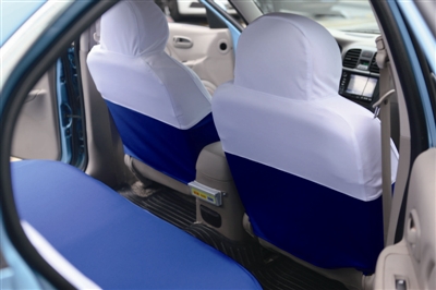 2号:蓝白相间座套 材质:涤纶 颜色:上白下蓝 价格:130元 优点:比白座套耐脏
