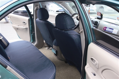6号:皮座套 材质:PU格 颜色:米色 价格:990元 优点:易擦洗、档次高 记者 蔡怀光