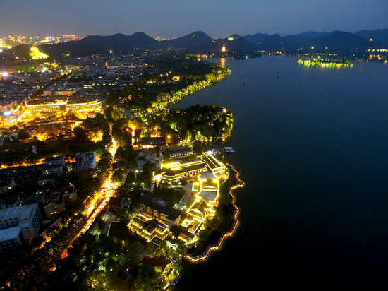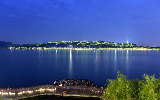 杭州西湖北线优美的夜景迎接各地游客。潘良干摄